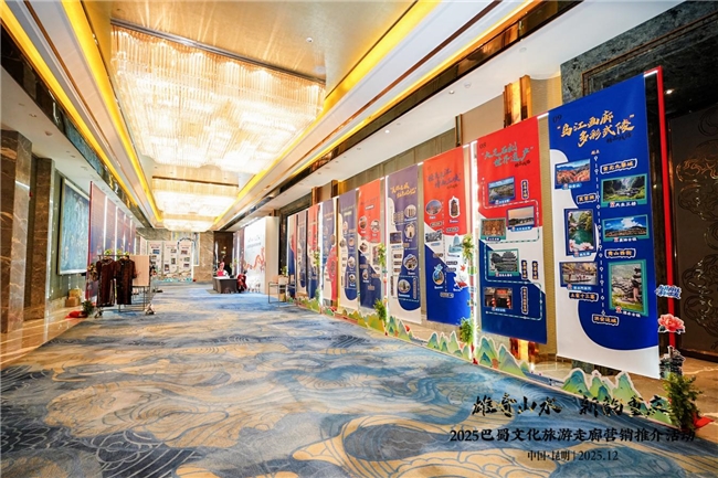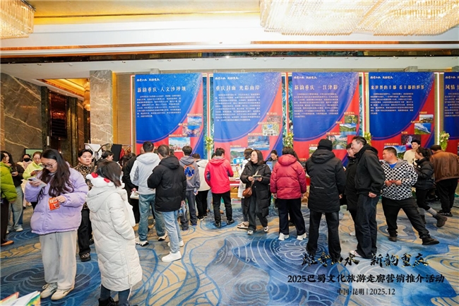 12月25日,“2025巴蜀文化旅游走廊营销推介活动”在昆明成功举办。本次活动由重庆市文化和旅游发展委员会主办,重庆新智文旅有限公司会展分公司承办,集中展示巴蜀文化旅游走廊建设成果,全方位推介重庆文旅核心资源与特色产品,为渝滇两地文旅产业协同发展搭建起坚实桥梁。重庆市和云南省、昆明市文旅部门相关领导,两地文旅企业、旅行社及主流媒体代表共300余人参会。